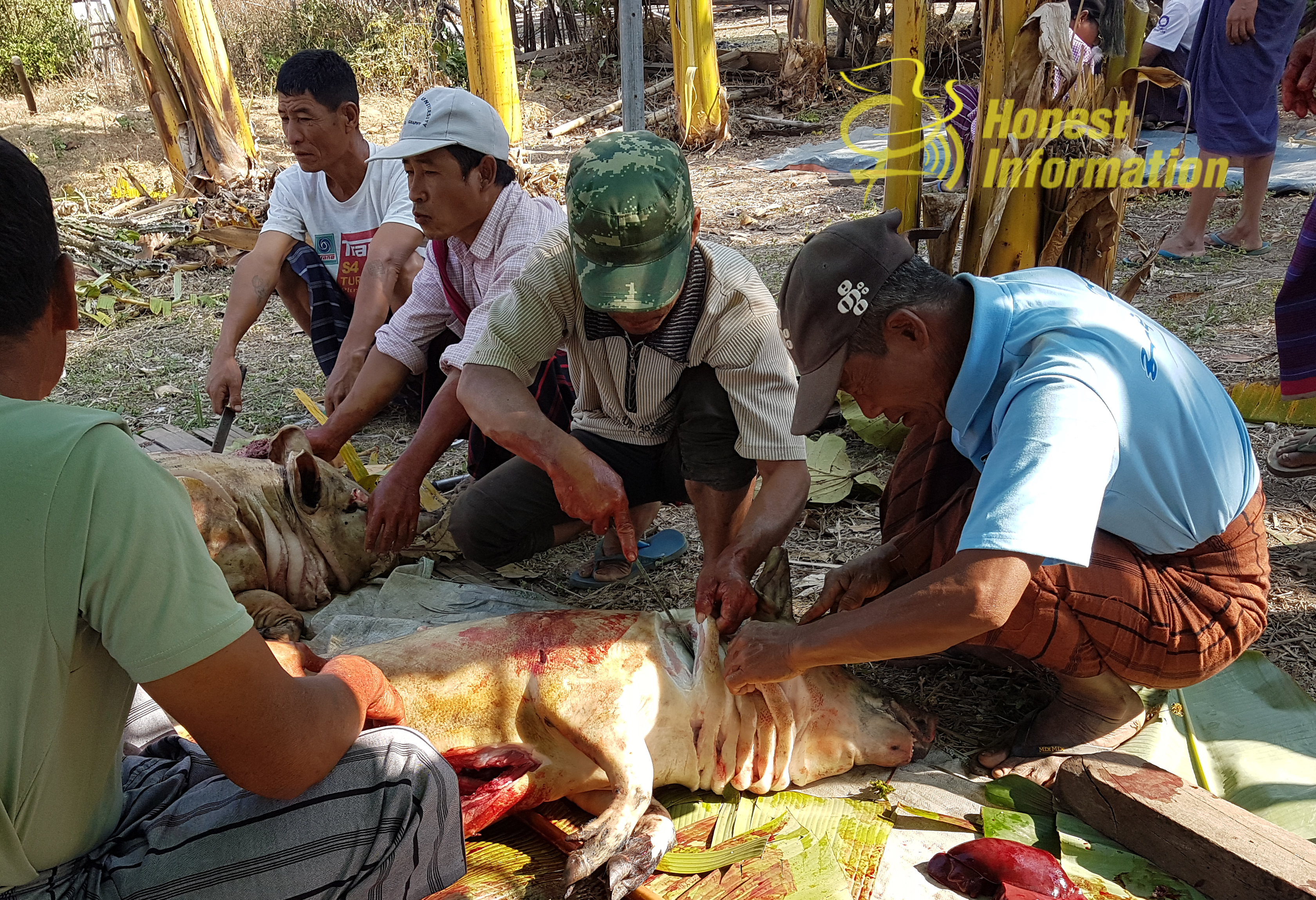 သတို့သမီးနှင့် သတို့သားတို့မိဘများမှာ ဝက်အရေခွံမလှန်ခင်တွင် ဝက်ပေါ်သူကို ငွေသား (၅၀၀၀)ကျပ် အခကြေးငွေအဖြစ် အရင်ပေးမှသာ အရေခွံလှန်ခွင့်ပြုသည်။ ကိစ္စများပြီးချိန်တွင် ဝက်အကောင်ကို အတုံး သေးများဖြစ်အောင် ခုတ်ကြပြီး လာသမျှဧည့်သည်၊ ဆွေမျိုးတို့ကို အိမ်ပြန်လက်ဆောင်အဖြစ် တယောက် တတုံးစီ ပေးကာ ကယားထမင်းထောင်းများနှင့် ကယားခေါင်ရည်တို့ကို တိုက်ကျွေးလေ့ရှိကြပါသည်။