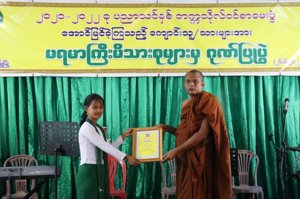 ထို့အပြင် ကျောက်ဖြူမြို့ရှိ ဘုန်းကြီးကျောင်း စာသင်ဝိုင်းများတွင် စာသင်ပေးနေကြောင်း ပြောသည်။