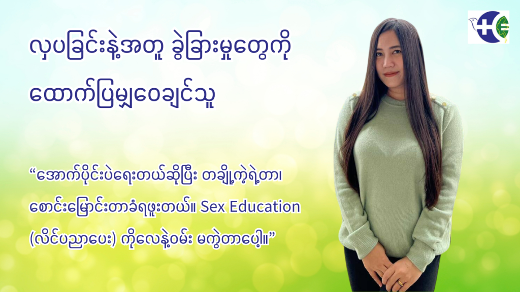 “ မသိသေးတဲ့လူတွေကိုပြောပြလိုက်ရရင် တာဝန်ကျေသလိုခံစားရတယ်။ ကိုယ်ပြောလိုက်လို့ တစ်ယောက်ပဲသိ သိပြောကို ပြောချင်တာ။” လို့ မိန်မိန်းကဆိုတယ်။