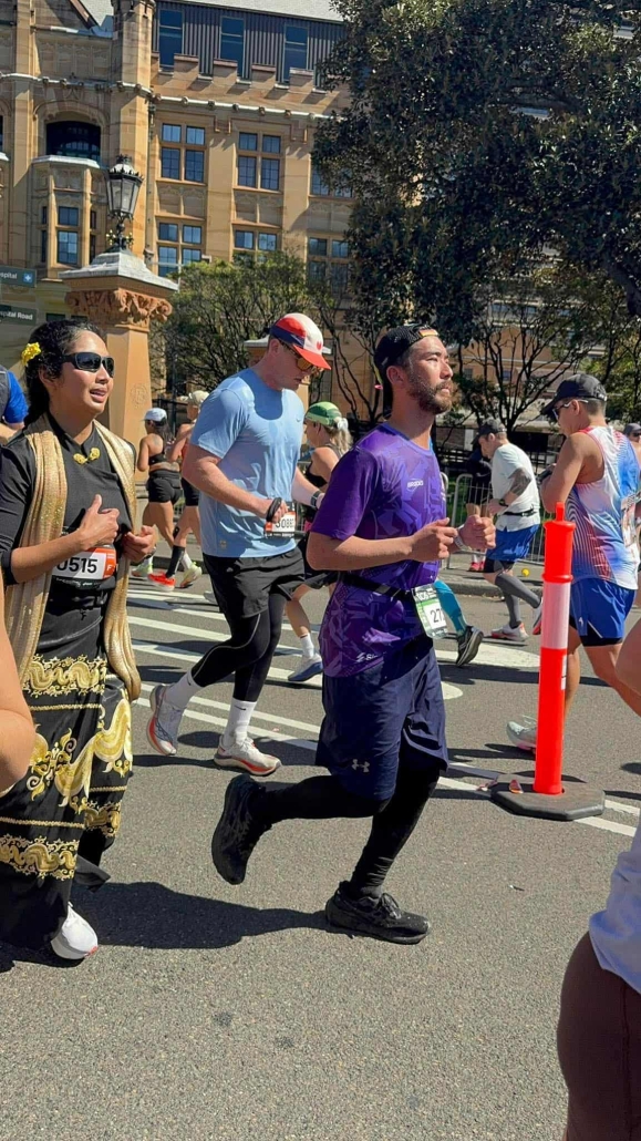 ဖြေ ။ ။ မာရသွန်တို့၊ မာရသွန်လွန် ( Ultra Marathon ) ပြေးပွဲတွေပြေးတာတော့ ၂၀၂၃ က စတာပေါ့။ Sydney Marathon မှာ ပြေးတာက ဒီနှစ်က ၃ နှစ်မြောက်ပါ။ ဒီနှစ်က ပိုထူးခြားတာက Sydney marathon ဟာ Abbott World Marathon Major အနေနဲ့ ပထမဆုံးသောနှစ်ပါ။ ၂၀၂၃ တုန်းက ပြိုင်ပွဲဝင်သူ ၁၇,၀၀၀ ကျော်ပဲ။ ဒီနှစ်ကတော့ ပြိုင်ပွဲ ဝင်သူစာရင်း ၃၅,၀၀၀ ကျော်ရှိပါတယ်။ ကမ္ဘာ့ထိပ်သီး မာရသွန်ချံပီယံတွေလာပြေးကြတယ်။ ဒီနှစ်က ပိုပြီးကြီးကျယ်တဲ့ နှစ်ပေါ့။ ဒါကိုအသုံးချပြီး စစ်တပ်က အပြစ်မဲ့ပြည်သူတွေကို သတ်ဖြတ်နေတာတွေ၊ မတရားအနိုင်ကျင့်ဖမ်းဆီး နှိပ်စက်နေတာတွေကို ကမ္ဘာက သိစေဖို့ ရည်ရွယ်ပြီး အခုလိုမြန်မာရိုးရာဝတ်စုံလေးဝတ်ပြီးပြေးဖြစ်သွားတာပါ။