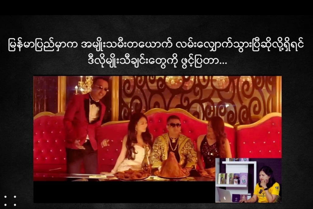 မြန်မာပြည်မှာက အမျိုးသမီးတယောက် လမ်းလျှောက်သွားပြီဆိုလို့ရှိရင် ဒီလိုမျိုးသီချင်းတွေကို ဖွင့်ပြတာ၊ ဆိုပြတာတို့က အမျိုးသမီးတိုင်းကြုံနေရတဲ့ ဓလေ့တခုလိုမျိုးတောင်ဖြစ်နေပြီ၊ ဒါတွေက အမျိုးသမီးတွေကို လိင်ပိုင်းဆိုင်ရာ ထိပါးနှောက်ယှက်တဲ့အပြုအမူဆိုတဲ့ဟာကို မတွေးမိတော့ဘဲနဲ့ နေ့တိုင်း ထမင်းစားရေသောက်လိုမျိုး နေ့စဉ်ချိုးဖောက်နေတာတွေဟာ ဒီလိုမျိုးသီချင်းတွေရဲ့ ဆိုးကျိုးသက်ရောက်မှုက ဘယ်လောက်ကြီးမားနေတယ်ဆိုတာကို သက်သေပြနေသလိုပဲ ဖြစ်နေပါတယ်။