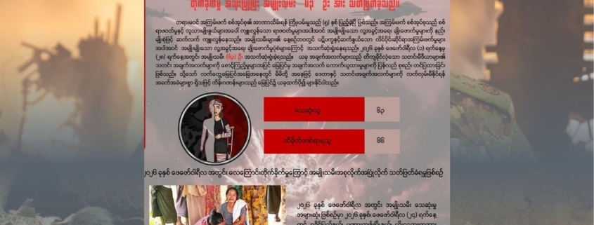 ရခိုင်ပြည်နယ် ပုဏ္ဏားကျွန်းမြို့နယ်၊ ယိုးငူကျေးရွာမှာဖြစ်ပွားခဲ့တဲ့ လေကြောင်းကနေ အစုလိုက် အပြုံလိုက် သတ်ဖြတ်မှုကြောင့် အမျိုးသမီး ၁၃ဦး သေဆုံးမှုအပါအဝင် ယခုနှစ် ဖေဖော်ဝါရီလအတွင်း အမျိုးသမီး ၆၃ဦး သေဆုံးခဲ့တယ်လို့ မြန်မာ့အမျိုးသမီး သမဂ္ဂ (BWU) က ထုတ်ပြန်ပါတယ်။