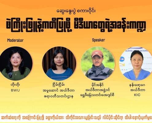 “ဖဲကြိုးဖြူနဲ့ ကတိပြုဖို့ မီဒီယာတွေရဲ့အခန်းကဏ္ဍ” ဆွေးနွေးပွဲ စကားဝိုင်း
