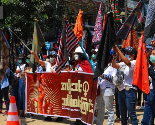 ဒါကြောင့် နိုင်ငံတစ်ဝန်းမှာ စစ်အာဏာရှင်ကို ပြည်သူတွေက ဆန့်ကျင်တိုက်ထုတ်နေကြပါတယ်။ ထိုအထဲ အမျိုးသမီး သူရဲကောင်းများစွာလည်း ပါဝင်ခဲ့၊ ပါဝင်တိုက်ထုတ်နေကြဆဲပါ။ အမျိုးသမီးတွေဟာ ငြိမ်းချမ်းရေးအတွက်လည်း အစဉ် အဆက်ရှေ့တန်းမှာ ပါဝင်ခဲ့ကြသလို အာဏာရှင်တိုက်ပွဲမှာလည်း ကျရာကဏ္ဍကနေ ပါဝင်နေကြပါတယ်။
